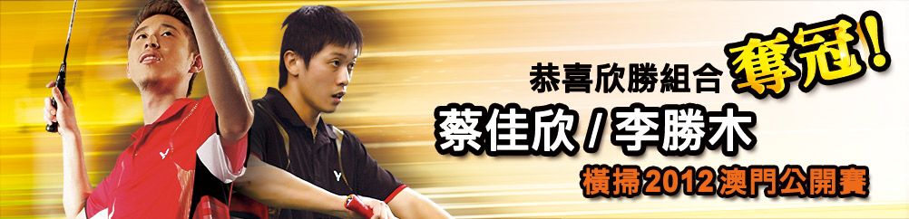 中華隊新興的男雙搭檔「欣勝組合」蔡佳欣/李勝木,在國內排名賽一口氣奪冠之後,便昂首踏入國際賽的大門。端看蔡/李兩人在2012香港超級系列賽的驚人表現,說他們是「過五關斬六將」一點都不過分。